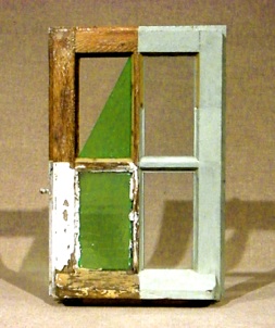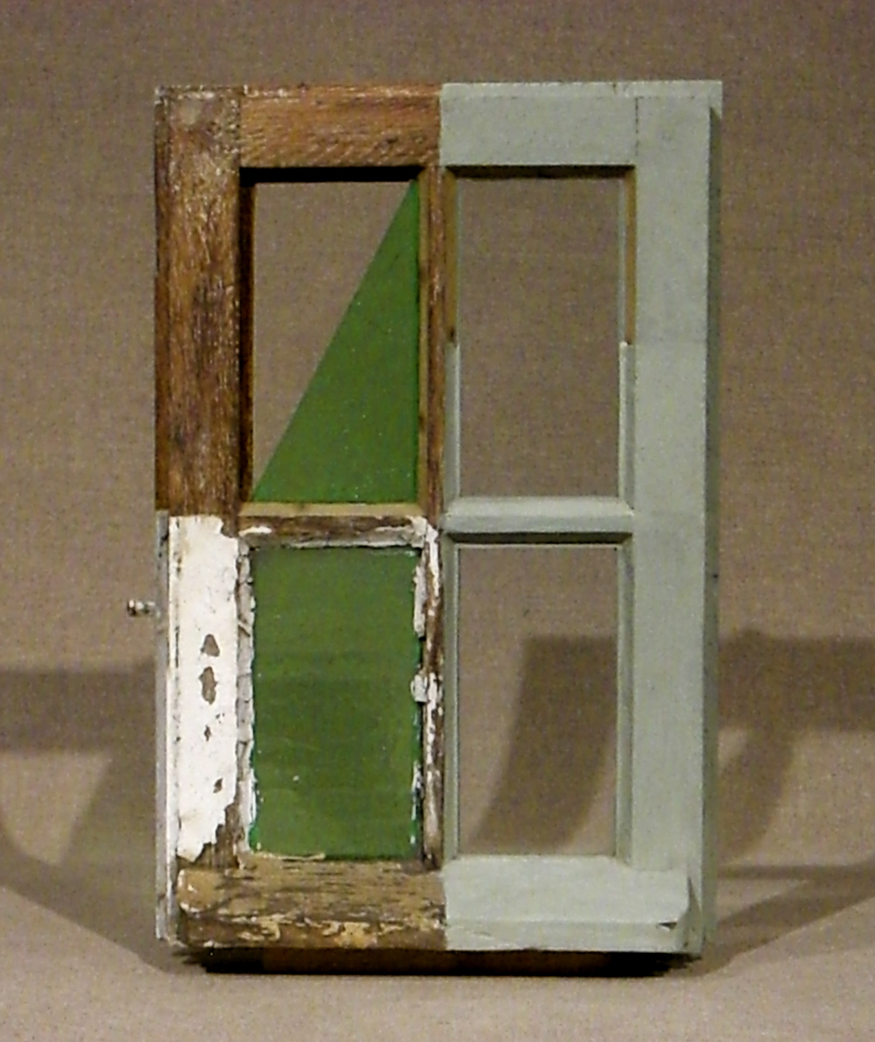 B. Ausglasen und Farbentfernung. Leinöl-grundierung. (Halbe Original-Scheibe als Muster mit Leinölkitt wieder eingeglast.)